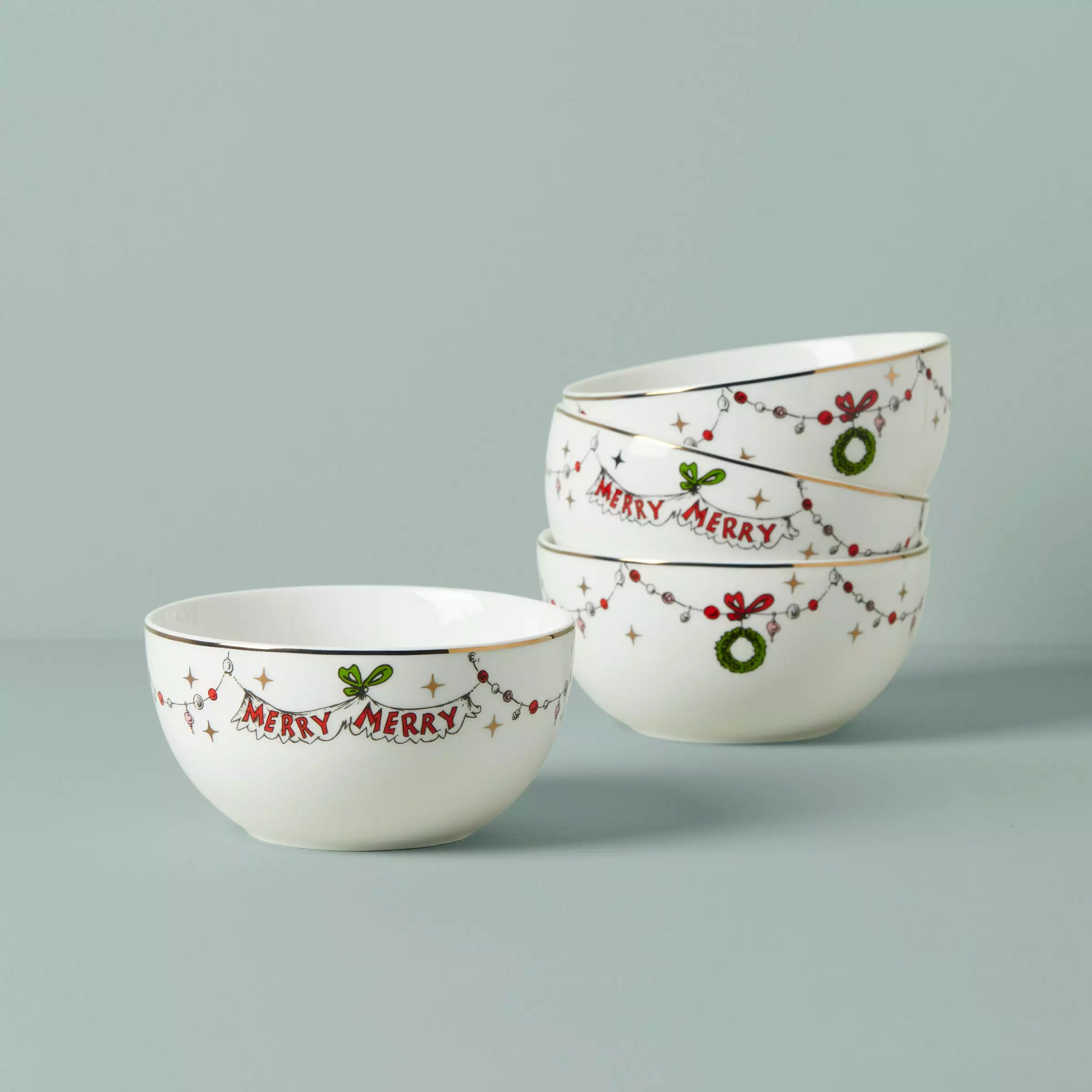 The Grinch is going to steal Christmas… and your heart! Celebrate like the Whos and decorate your home with wreaths, ornaments, banners, and bows! This festive set of all-purpose bowls features Whoville-inspired holly along all its edges.