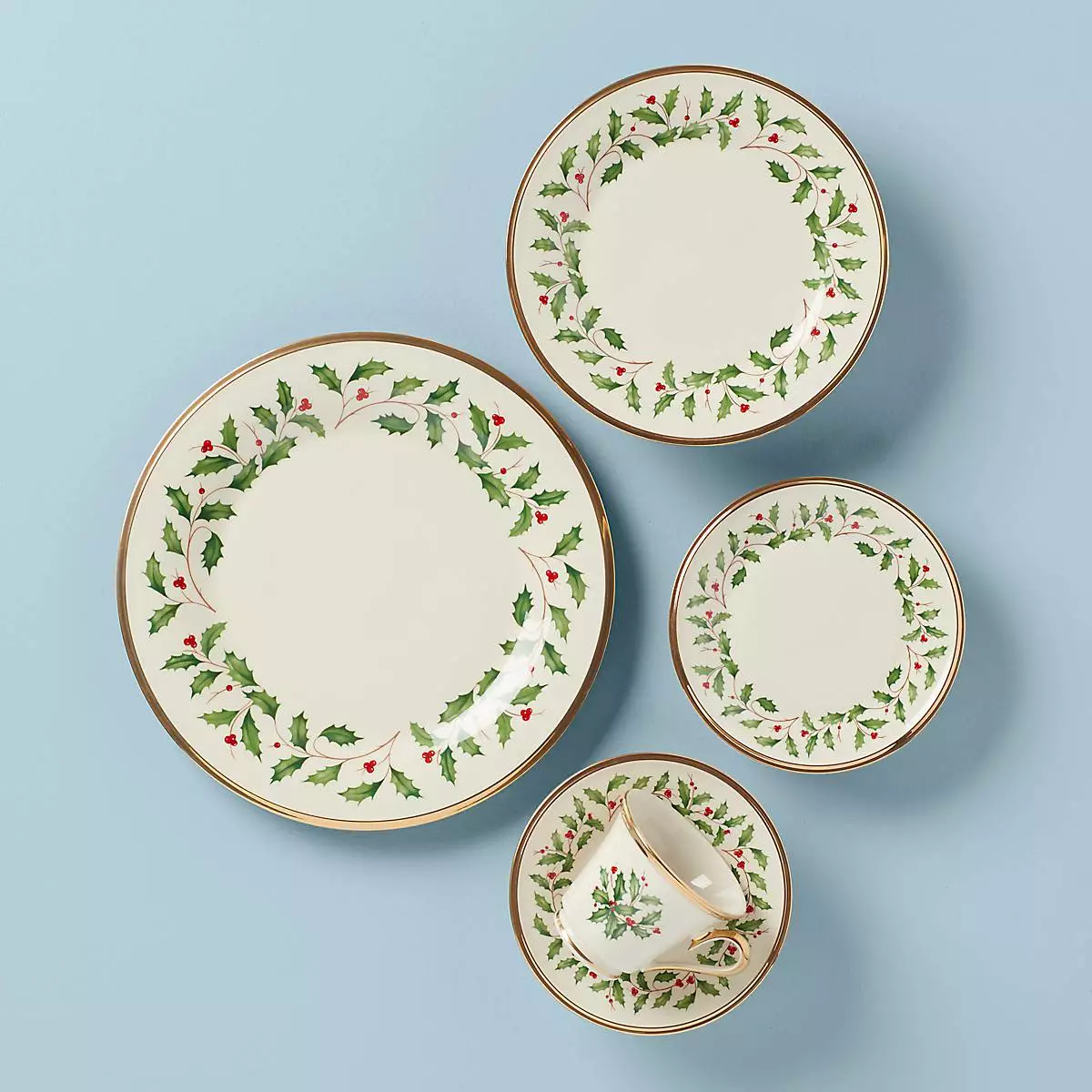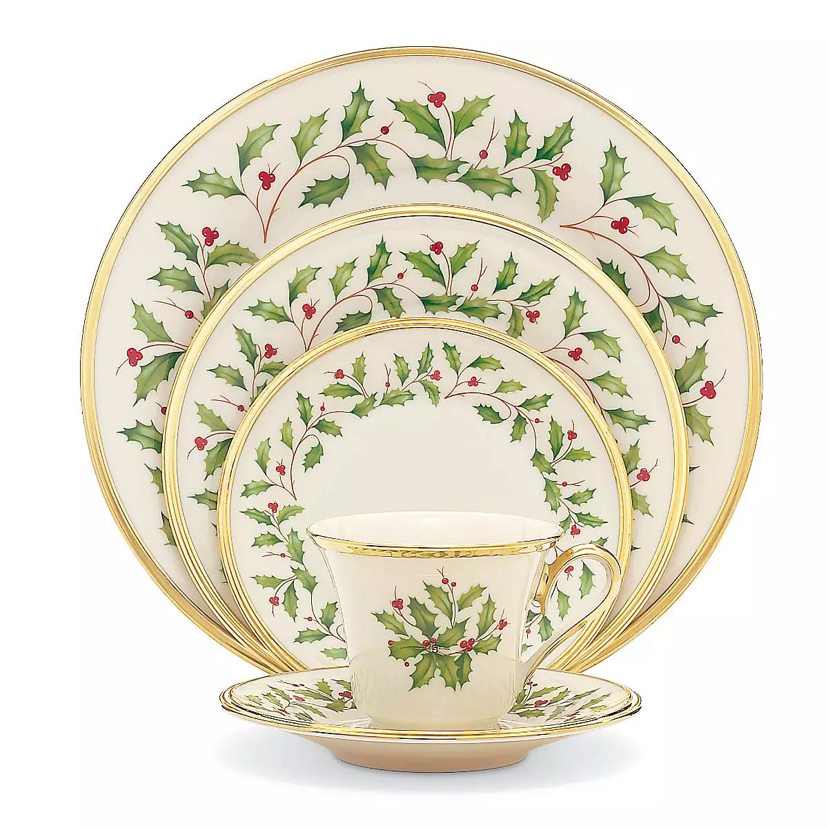 Part of the time-honored Lenox Holiday Dinnerware Collection, our holly and berry motif adorns the surface of the Holiday 5-Piece Place Setting. Crafted from porcelain with a rich, 24-karat gold trim for an opulent, holiday-themed tableware addition.