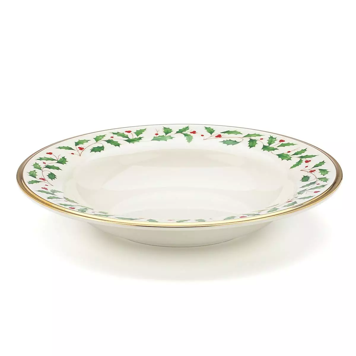 Part of the time-honored Lenox Holiday Dinnerware Collection, our holly and berry motif adorns the surface of the Holiday rimmed pasta bowl. Crafted from porcelain with a rich, 24-karat gold trim for an opulent, holiday-themed tableware addition.