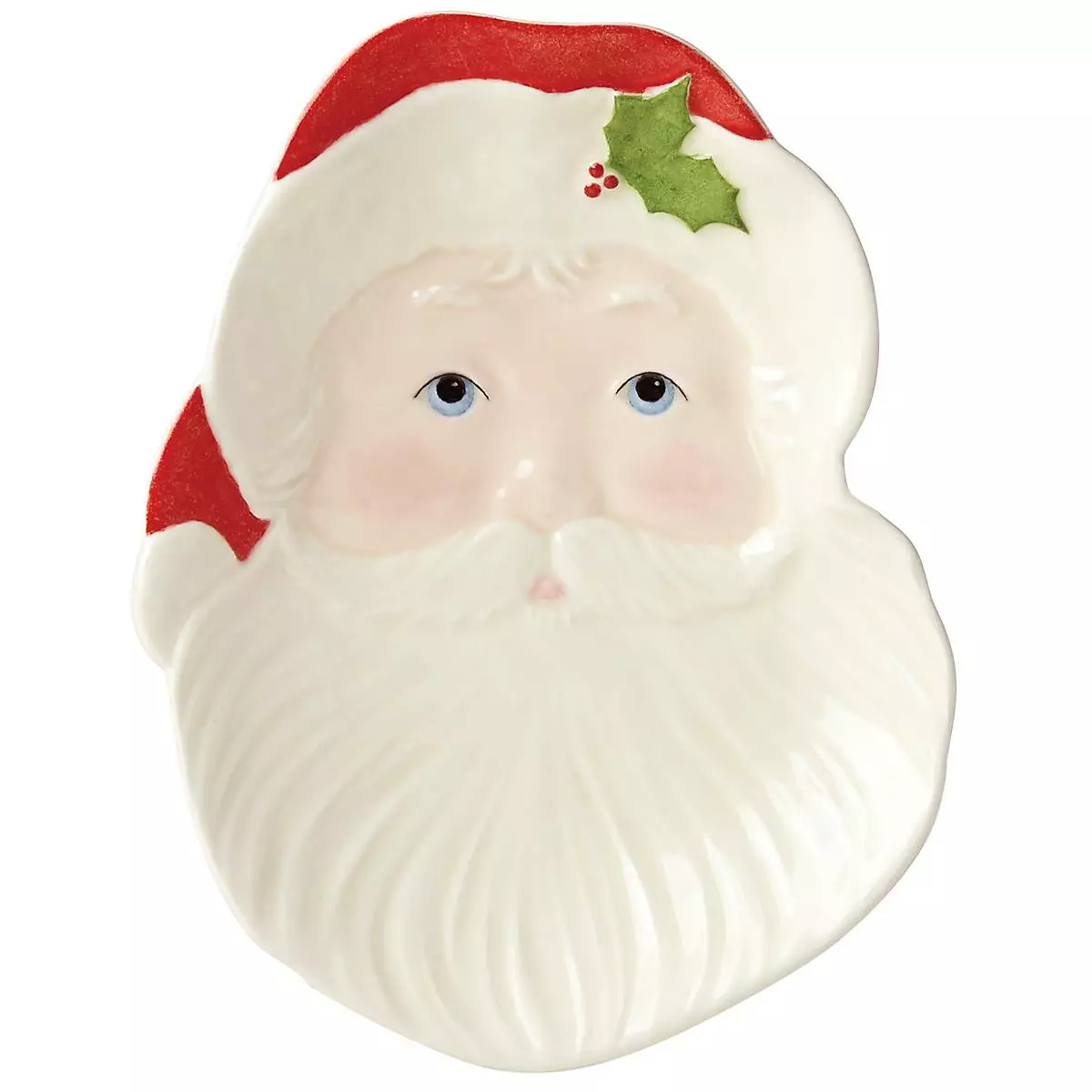 This hand-painted ivory porcelain spoon rest is shaped like Santa Claus and features soft red and green accents for a festive look. It’s the perfect addition to your kitchen counter this season!