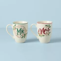 Lenox Set Utensil Crock Stripe Handpaint Holiday