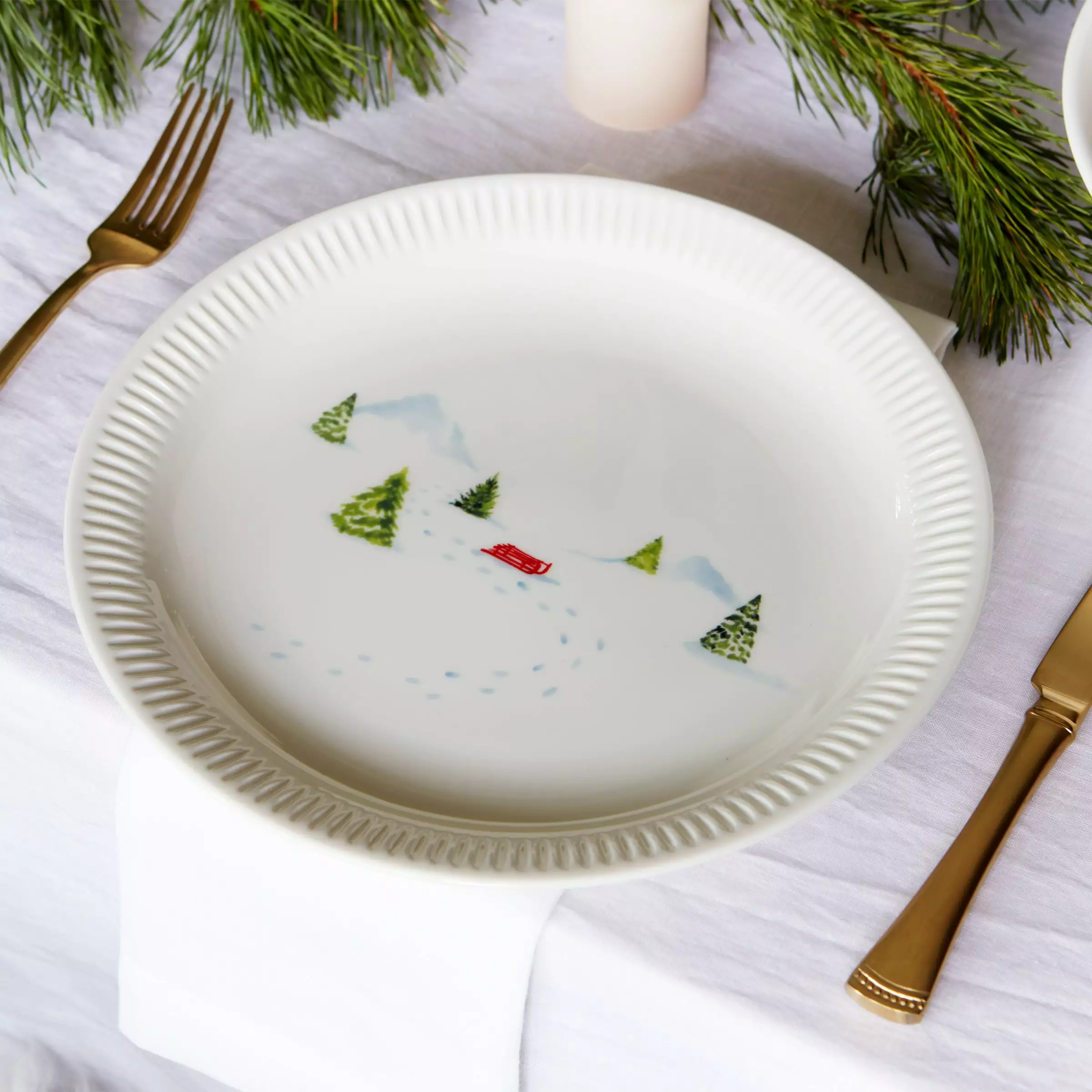 Set your table for the season with this nostalgic update to our classic Profile collection. Each piece features the same durable, white porcelain craftsmanship, but now with a serene winter scene that celebrates the joy of a snow day. This 4-piece dinner plate set is both dishwasher and microwave safe for easy convenience when you’re heating up a quick snack or cleaning up in between making snow angels in the backyard.