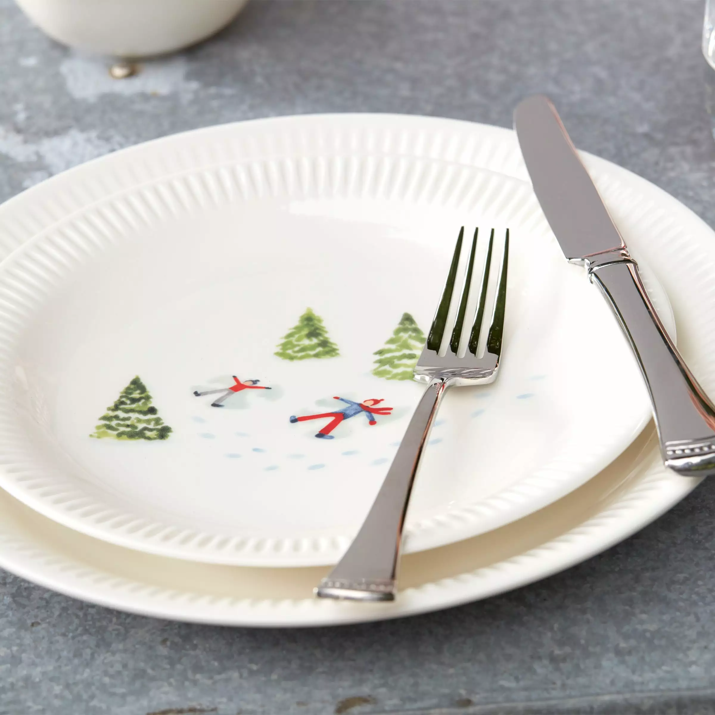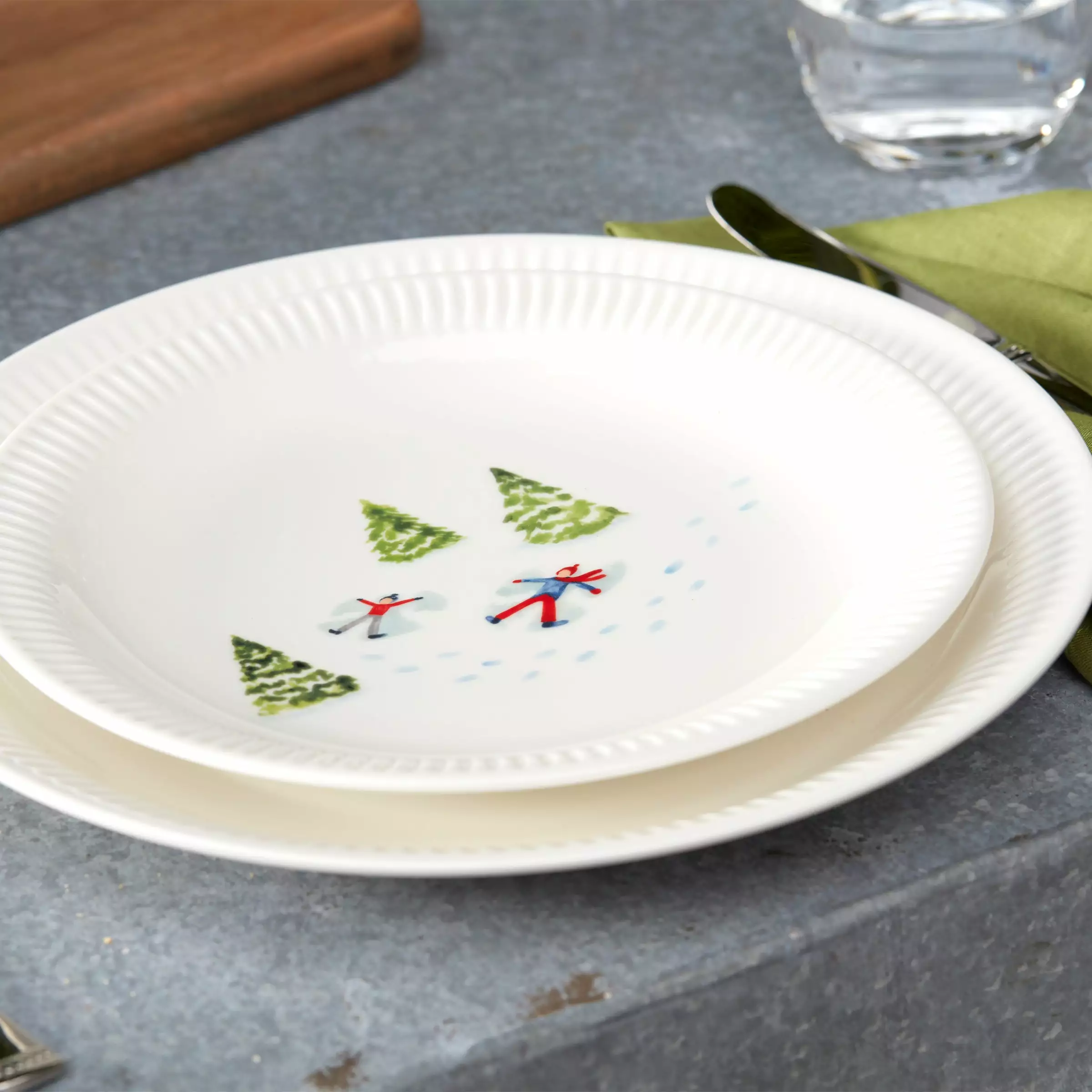Set your table for the season with this nostalgic update to our classic Profile collection. Each piece features the same durable, white porcelain craftsmanship, but now with a serene winter scene that celebrates the joy of a snow day. Everything is both dishwasher and microwave safe for easy convenience when you’re heating up a warm bowl of soup or cleaning up in between making snow angels in the backyard. This 12-piece dinnerware set comes with four dinner plates, four accent plates and four bowls.