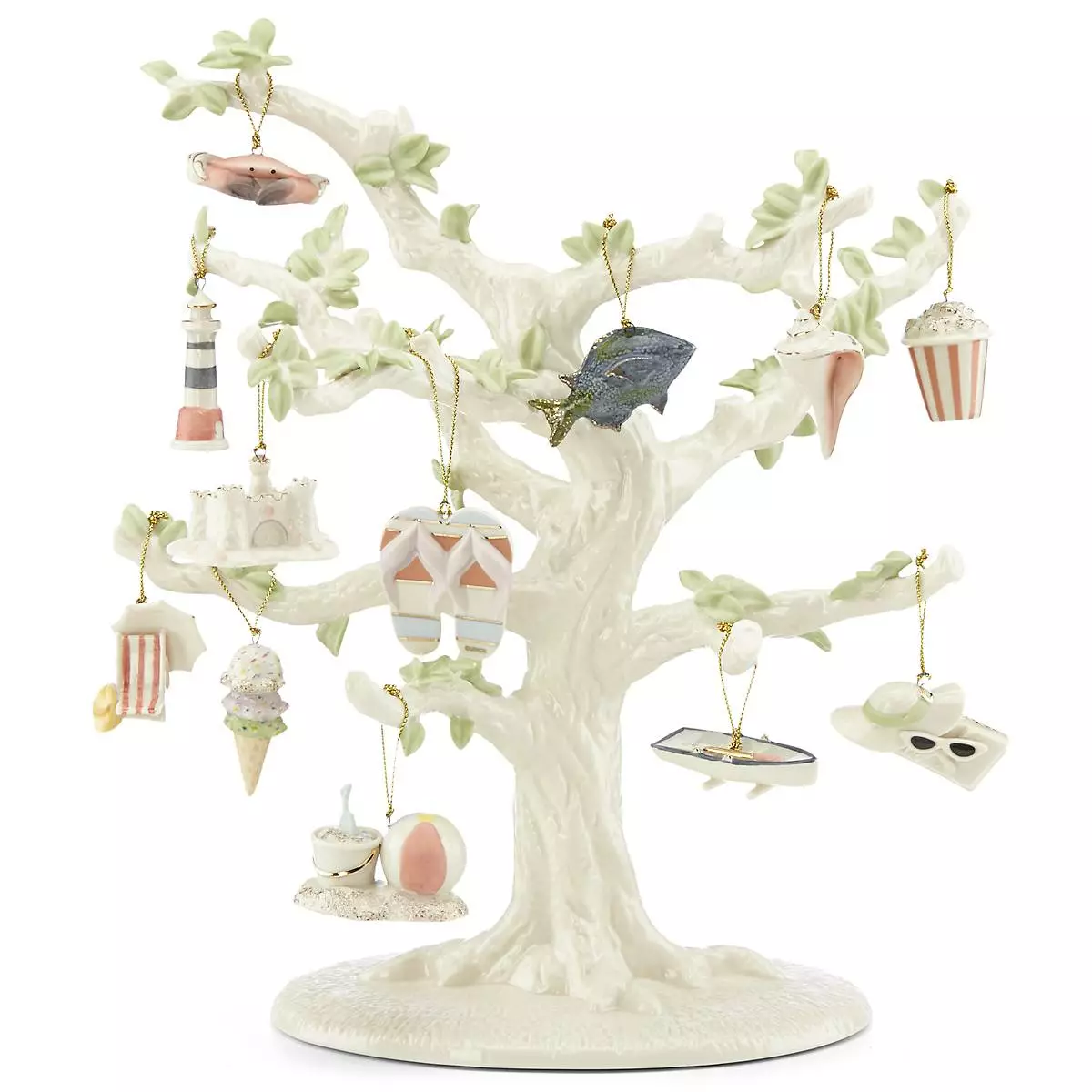 Celebrate summer all year long with this porcelain 12-piece ornament set featuring a variety of symbols of prime vacation season: from ice cream cones to flip-flops to seashells and more!