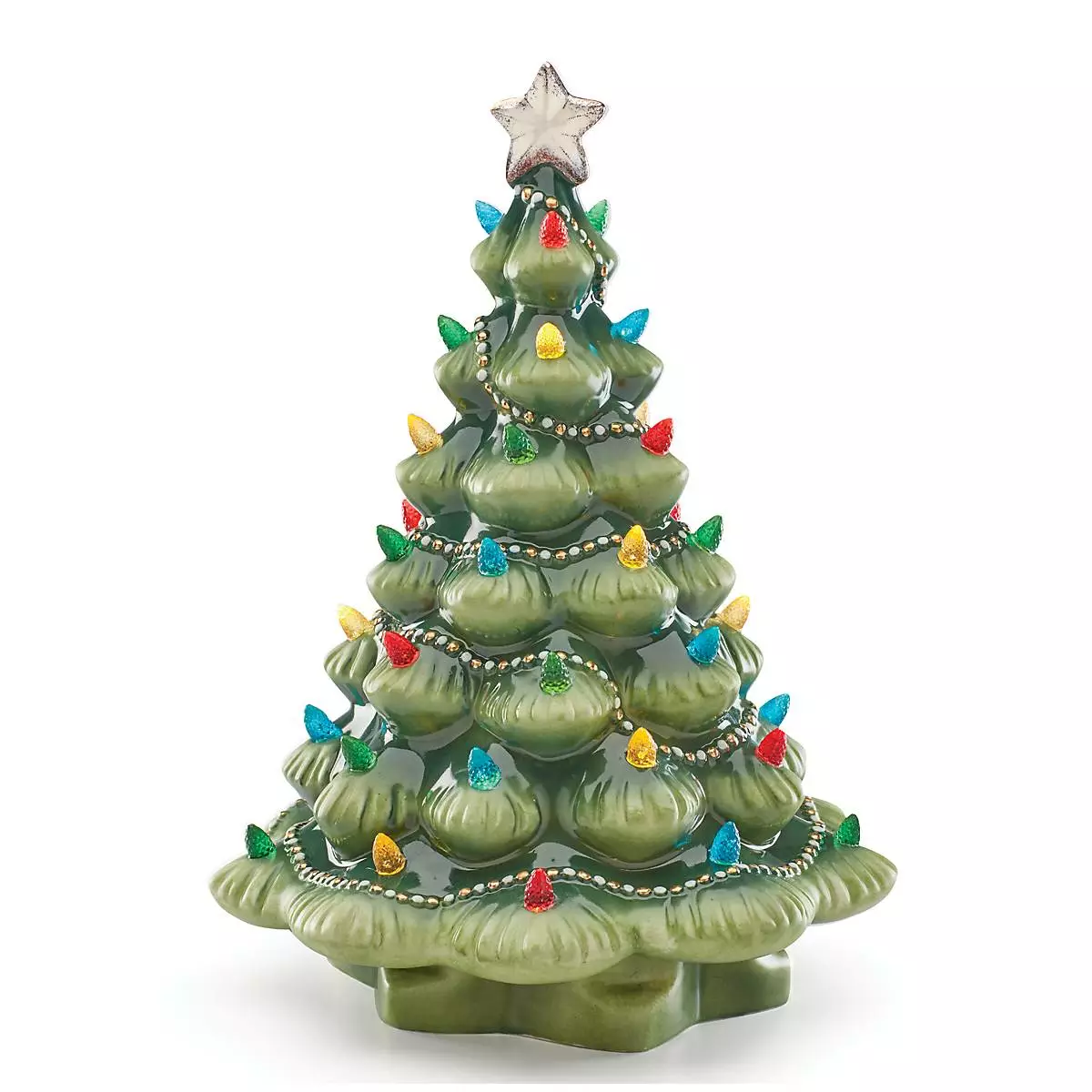 Everyone’s favorite centerpiece for decades, this Treasured Traditions tree is a piece of holiday nostalgia that you can pass down from generation to generation. Crafted of stunning ceramic material, the carved tree figurine features hand-painted detail and is topped with a star at the top for a luminous finish. This tree comes with multi-colored bulbs throughout for a cheery glow that will steal the spotlight on your mantel.